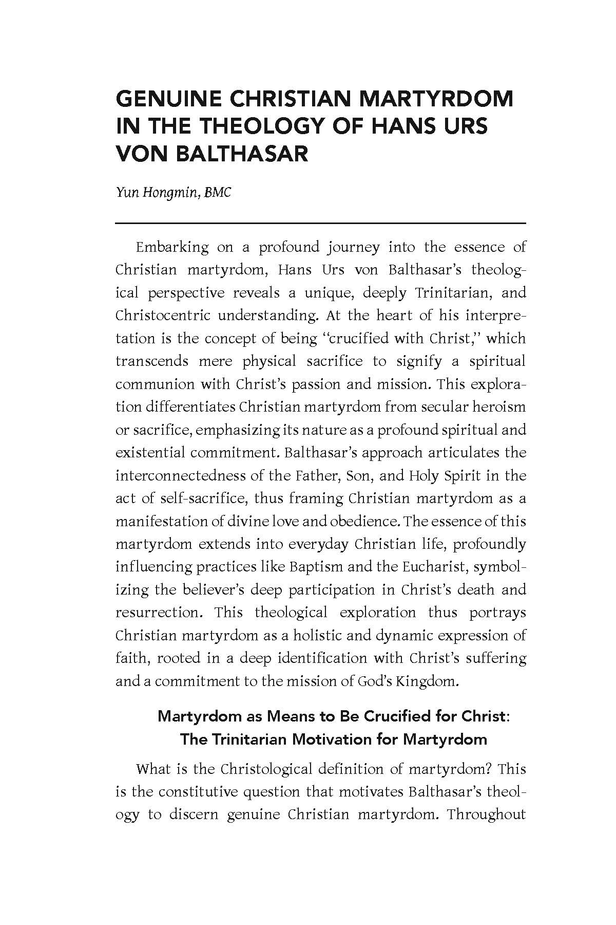 Yun explores the contemporary theology of martyrdom.