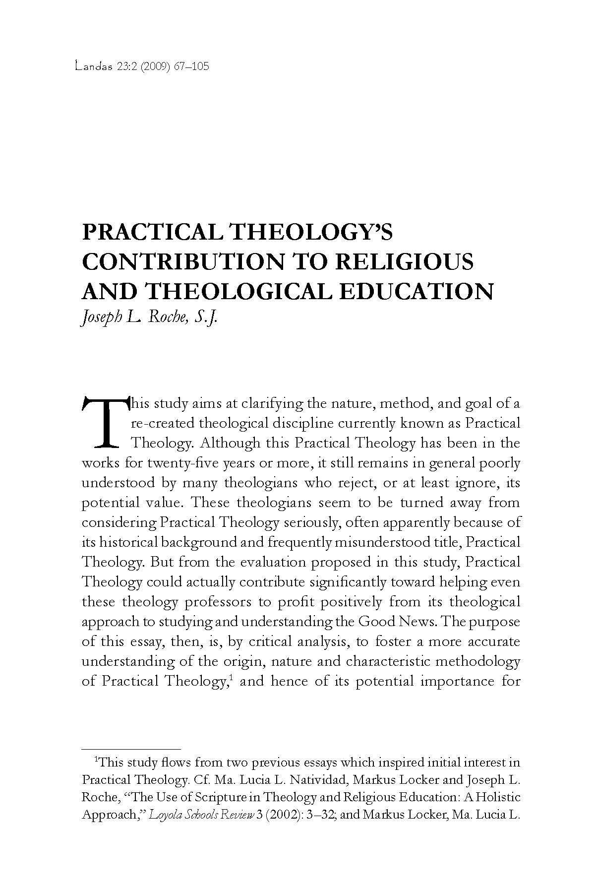 The essay of Joseph Roche investigates what practical theology could contribute to religious and theological education. It distinguishes practical theology from what was earlier referred to as pastoral theology, and proceeds to show how the aims and methodologies of passing on the Faith could be enhanced by the perspective of practical theology. – from the Editor’s Preface