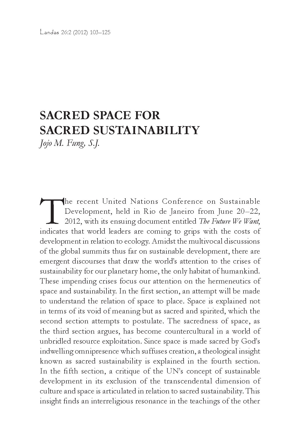 Fung proposes incorporating the cosmic spirituality of indigenous peoples into the Christian theology of creation in order to arrive at a view of development that is both sacred and sustainable. – from the Editor’s Preface